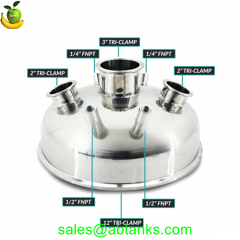 12' Hemispherical Lid 2x 2' Tri-Clamp 1x 3' Tri-Clamp 2x 1/4' FNPT 2x 1/2' FNPT